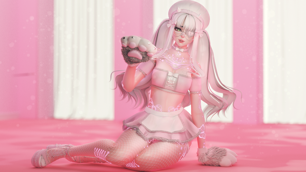 Belly piercing & Eye Texture - miriloo / Beret - foobbaby / Body - pandaabear / Body Texture & Nail Cuts - ying.vr / Bows - !Oshen#4444 / Bun hair & Choker 1 - darcy.fbx (nitro) / Top - skeletib / Pants - Nyakoh#6666 / Sneakers - sleepyvrc / Heels 1 - moobean / Earrings - holoexe / Eyelashes - sivka. , xsnail / Face Jewelry - sunnybun / Nail Gems - desipooh / Glasses - yamuvr / Hairs - saikura , nymphee , parvrc , yuurii / Head - sivka. / Heels 2 - teacakezz / Leg warmers - apyr (nitro) / Long sleeve sweater - loziloki / Onesie & Socks - rinebean / Maid Outfit - lolo3d / Pasties - Empress Moon / Paws - cow#4888 / Panties & Kitty Top - xsnail / Sock Ruffles - weeeby / Stockings by Yuuki#9669 / Icons & Tattoos 1 & 2 - maddiiee / Lollipop - nuusa / Underboob Top - meowmi / Dress - wetcat / Matcaps - minichibi / Poppable Bubblegum - cakie.exe / Deer Follower - Koragira , hfcRed / Floppy Hat - xitaberry / Combo Gestures - haï / Av3 Creator - Rafa / Gogo Loco - Franada / Sit Pose - Wetcat